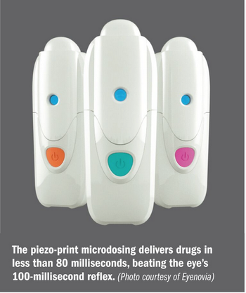 The piezo-print microdosing delivers drugs in less than 80 milliseconds, beating the eye’s 100-millisecond reflex.