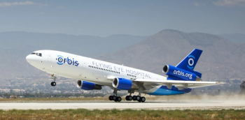 When it is not on a mission, the Orbis Flying Eye Hospital MD-10 aircraft often is situated at an airport where the fully accredited teaching facility is put to use as a mobile simulation center to train ophthalmologists from around the world in some of the latest sight-saving techniques.